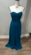 The skirt flows gracefully to the floor, making it perfect for formal events, weddings, bridesmaid occasions, galas, or evening celebrations. The rich teal blue color adds a timeless and sophisticated touch.
