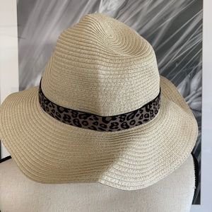 J.Crew Straw Hat with Leopard Brim Detail.