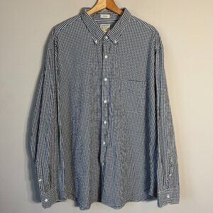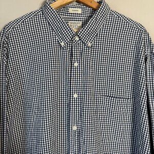J.Crew Stretch Organic Cotton Gingham Button Down Shirt Men's 3XL Navy White