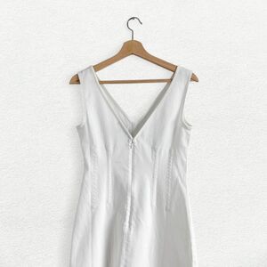 It comes with boning details along the bodice that hold you in and a soft A-line skirt that hits below the knee. Plus, it's crafted in a comfortable stretch twill that moves with you while keeping its structure.