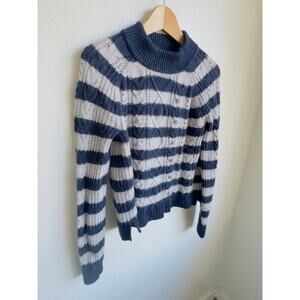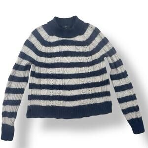 J.Crew Stripe Sweater Nautical Stripe Navy Gray Pom Pom Lambs Wool Mock Neck