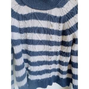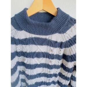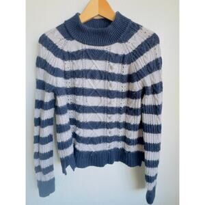 J.Crew Stripe Sweater Nautical Stripe Navy Gray Pom Pom Lambs Wool Mock Neck M