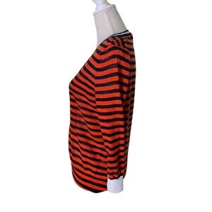 J.Crew Striped 3/4 Sleeve Knit Cardigan Women's L Tomato Red Navy Blue White