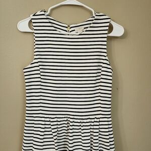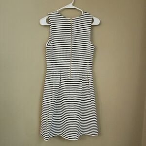 J.Crew Striped Black and White Sleeveless Dress Size XS Front pockets zip up back has clips on shoulder for bra straps. it is stretchy