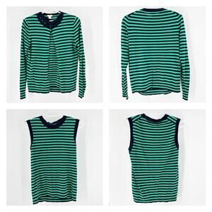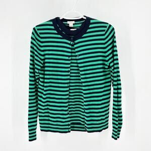 J.Crew Striped Caryn cardigan sweater green blue nautical preppy classic set