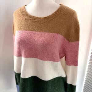 J.Crew Striped Colorblock Sweater Medium Extra Soft Crew Multi-color Fall Cozy