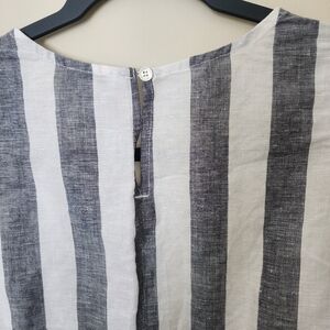 Light and airy, this J.Crew sleeveless top is perfect for warm weather! Made from a breathable linen-cotton blend, it features bold vertical stripes, a back keyhole closure, and a tie-hem detail for a chic touch.