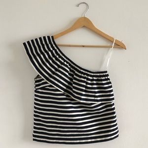 J.Crew Striped One Shoulder Ruffle Top