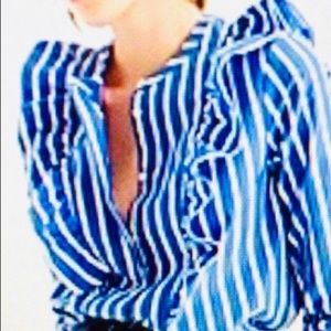 JCrew Striped Ruffle Blouse. Full button down. Very flattering. Size 14. Length from top of shoulder to bottom 22”; chest from armpit to armpit 42”; sleeve length from top of shoulder 22”.