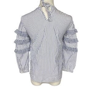 Elevate your style with this chic striped top featuring elegant ruffle details. Perfect for any occasion.