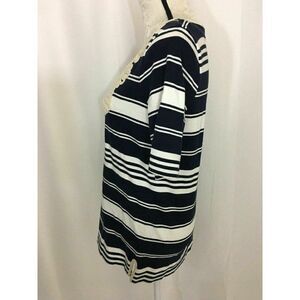 J Crew Womens Blue White Ivory Striped Short Sleeve Sweater Top Medium