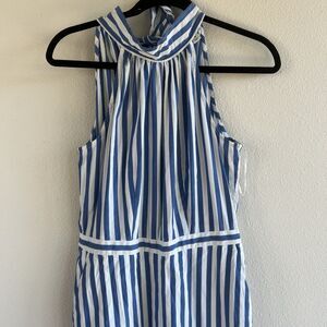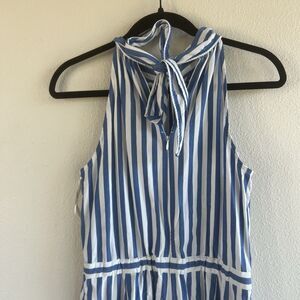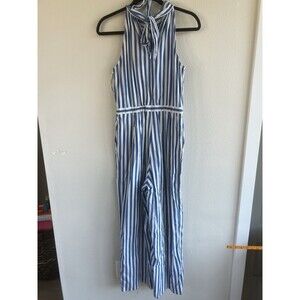 J.Crew Striped Tie-Halter Wide-Leg Jumpsuit Pocket Cotton Blue White Women's 4