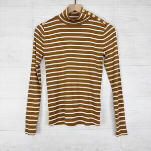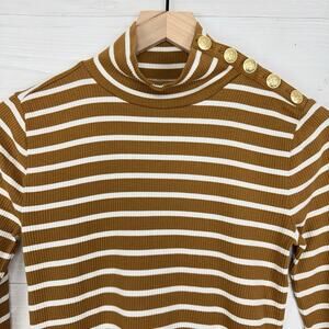J.Crew Striped Turtleneck Sweater Top XS Button Ribbed Knit Long Sleeve Yellow