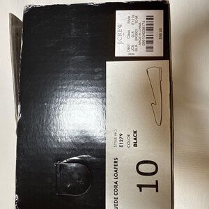 New in box J.Crew black suede Cora loafers. In original box; have never been worn.
