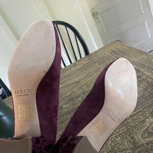 Brand new pair of J.Crew Burgandy Suede Block Heels. Low Heels. Square Toe. Leather like detailing on heel. Smoke free home. Size 7
