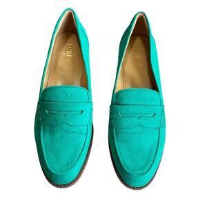 J.Crew Sueded Penny Loafers Green Size 9 Preppy