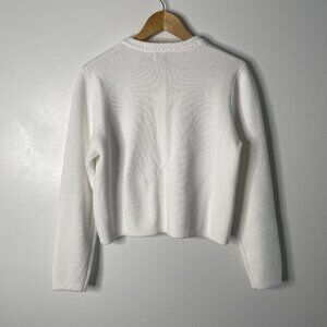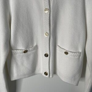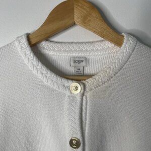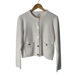 J.Crew Sweater Cardigan Womens Medium White Gold Buttons Braided Trim BY047