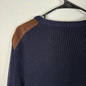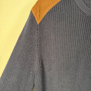 J.Crew Sweater Men's Large Suede Shoulder Patch Blue
