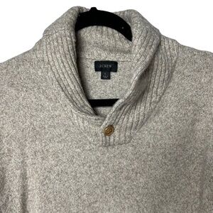 JCrew Sweater Mens Tan Collared Merino Wool Blend Mock Neck SZ L Henley Pullover