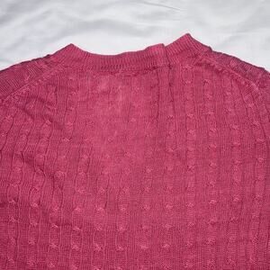 J.Crew Sweater Women’s Size M Pink Cable Knit Linen V Neck Pullover Long Sleeve.