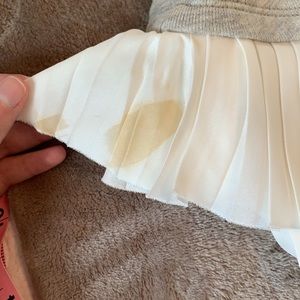This sweatshirt is so adorable! Originally purchased from J.Crew and worn only a couple times. One smAll stain on the left hip that I have not attempted to get out. The top is sweatshirt material and the asymmetrical ruffles on the bottom add feminine flair. Wear this top and get away with wearing a comfy sweatshirt to work or out and about!
