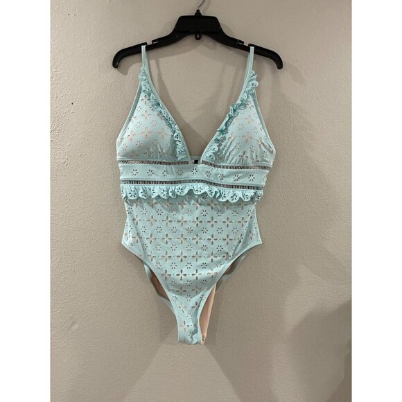 J.Crew Swimsuit Scallop Ruffle Eyelet One Piece plunging size 14 color Teal