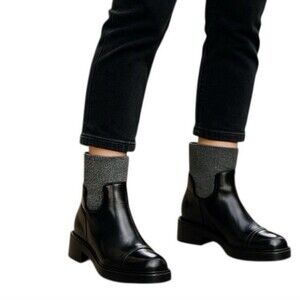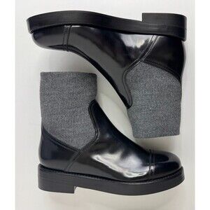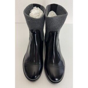 J.Crew Sz 7.5 Spazzo Rib Cuff Boot In Patent Italian Leather Black Round Toe NWB