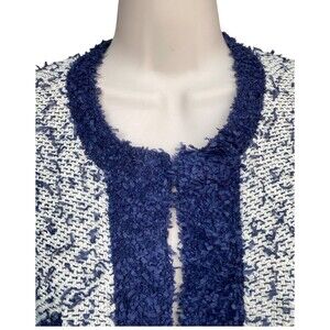 J.Crew Sz M contrast tweed white Navy Open front cropped jacket blazer cardigan