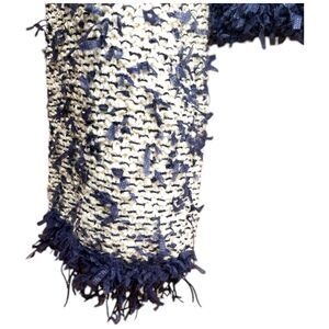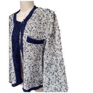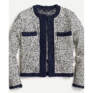 J.Crew Sz M contrast tweed white Navy Open front cropped jacket blazer cardigan