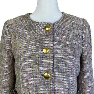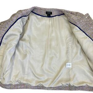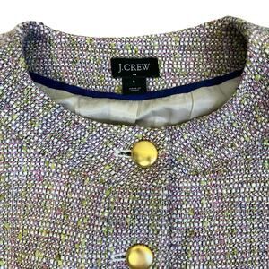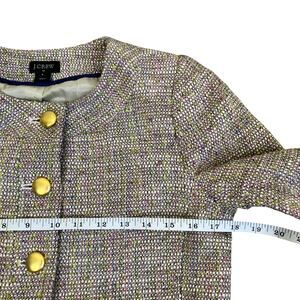 J.Crew Sz S Confetti Tweed Blazer Jacket Pink Green Bracelet Sleeves Classic