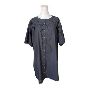 J.Crew SzL Eyelet Long Sleeve Poplin Cotton Poplin Mini Dress Sz L Button Front