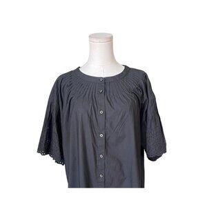 • Shirt Summer Cotton Poplin Black long sleeve eyelet lace cottagecore peasant embroidered poplin boho preppy resort office