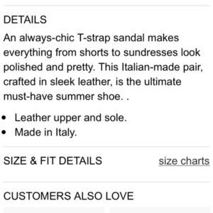 An always-chic T-strap sandal makes everything from shorts to sundresses look polished and pretty. This Italian-made pair, crafted in sleek leather, is the ultimate must-have summer shoe.