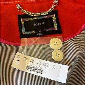 J.Crew red jacket, NWT utility jacket, red tailored jacket, women's casual jacket, bold statement jacket, J.Crew button-down jacket, red layering jacket, structured utility jacket, versatile red blazer, J.Crew wardrobe essential.