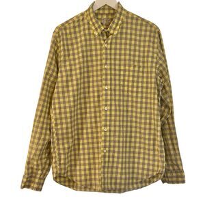J.Crew Tailored light weight fit yellow and grey checkered button down size lar