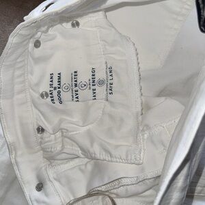 Tall girl jeans!! Approximate measurements in photos. Excellent condition. The toothpick is lean, long and a little bit sexy - and it's the pair we're most likely to tear our closet apart looking for. We love the cool relaxed vibe - not to mention the flattering fit, thanks to our Perfecting Pockets™, which are so much more than front pockets... They hold you in, lift you up and are really comfortable too. This pair comes in a bright-white wash and is made with a recycled polyester that is crafted from recycled plastic bottles, yarns and fabric scraps. Plus, it was crafted at a Fair Trade Certified™ factory that provides additional income and better conditions for the people who work there.