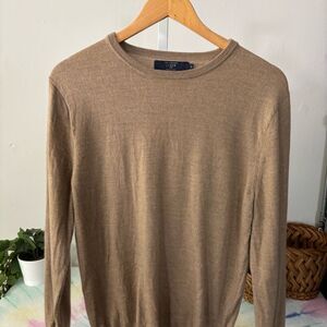 J. Crew Tan Crewneck Sweater Classic Pullover Style Merino Wool men’s Medium