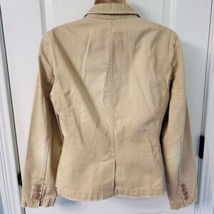 This J. Crew tan blazer is a versatile addition to your wardrobe, featuring a tailored fit and structured shoulders. Its classic notched lapels make it perfect for both casual and business casual occasions.