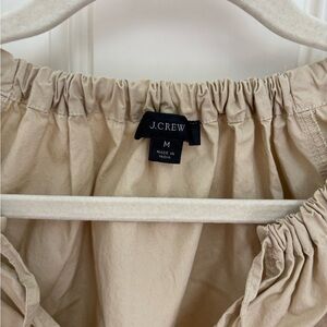 J.Crew Tan Poplin Short Sleeve Cinched Keyhole Neck Blouse Size Medium