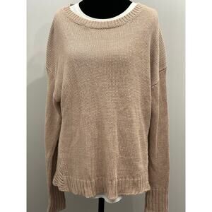 J.Crew Tan Textured Knit Sweater Medium Crew Neck Cotton Blend