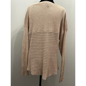 Soft, slouchy, and effortlessly chic—this neutral-toned J.Crew sweater is a closet staple. Crafted from a midweight textured knit, it features a crew neckline, ribbed cuffs and hem, and subtle high-low side slits. The contrast knit on the back adds modern detail. A go-to for minimalist fall style, transitional layering, or laid-back weekend fits. Women's size Medium, cotton-blend comfort.