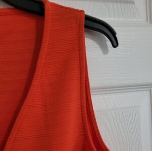 This is a J.Crew tight knit tank top/blouse. Women's size small. Dark orange color. Casual/semi-casual. It has a v-neck with a button-up front and tie design across the bottom. Used but in excellent condition, no holes or stains. This shirt can be dressed up or down to create the perfect outfit. Perfect with pants or shorts, shoes or sandals, semi-casual, professional, business savvy, boho, preppy hippie, festival, etc.