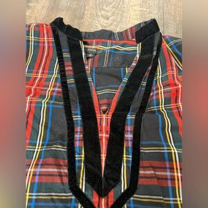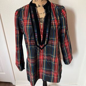 This listing is for a VGUC J.Crew black tartan tunic in size medium. The tunic has black velvet detailing along the collar, please see the photos for measurements.