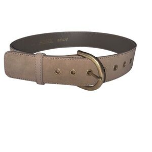 J.Crew Taupe Leather Belt Brass Buckle Classic Minimal Size Small 26”-30” waist