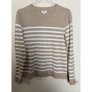 J.Crew Teddie Striped Sweater Size M Tan White – Classic Crewneck Knit Fall Neut