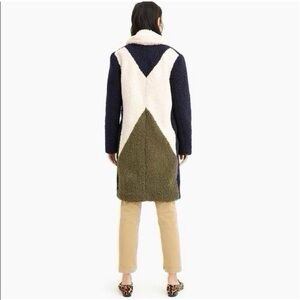 J.Crew Teddy Sherpa Colorblock Coat Green Ivory Navy Blue