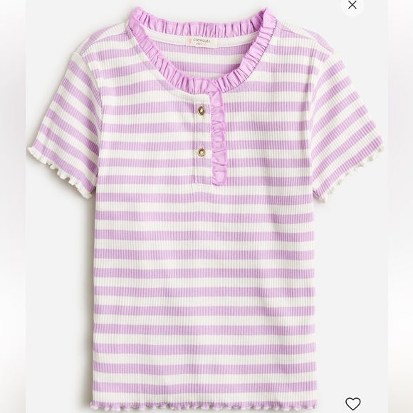 J.Crew short-sleeve tee with a ruffle neckline and lettuce-trim details. Made from vintage rib fabric, a lightweight cotton blend that's soft and stretchy