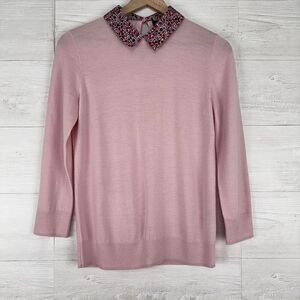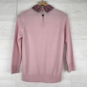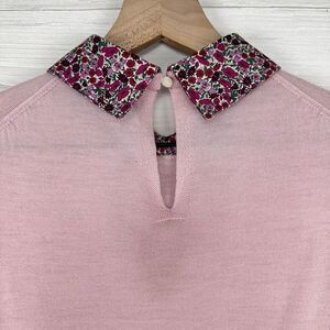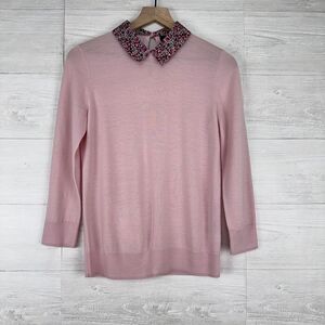 J. Crew Tippi Sweater Baby Pink Floral Liberty Collar Women Small 100% Merino Wool