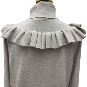 J.Crew Tippi Turtleneck Ruffles Heather Dusk Grey Merino Wool Sweater Size Large