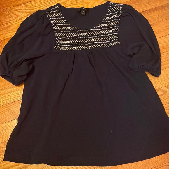 Navy top from J.Crew with beautiful stitch detailing. The neckline and sleeves have elastic stretch.